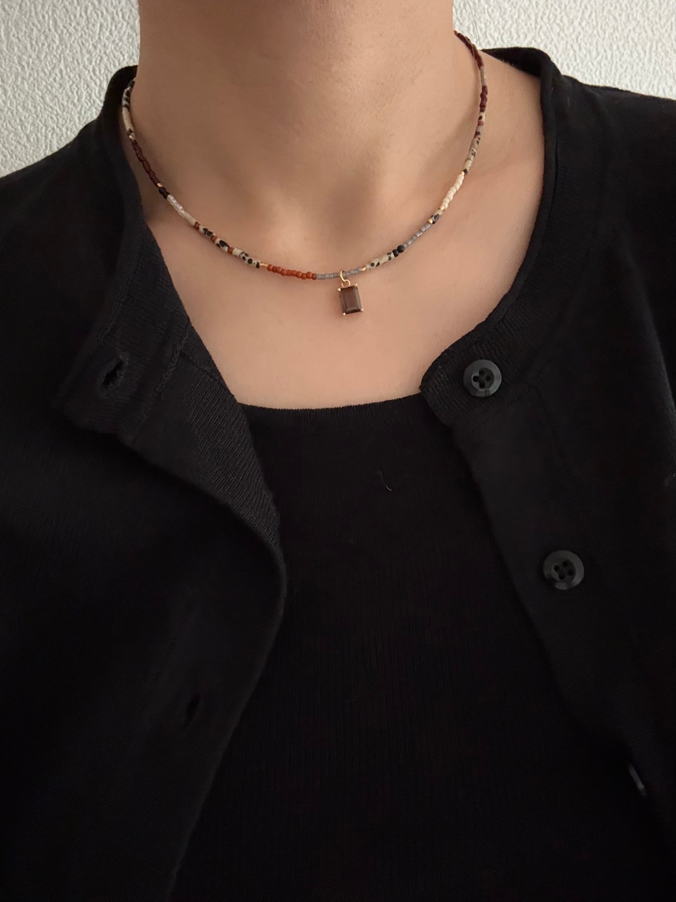SmokyQuartz×DalmatianJasper Necklace